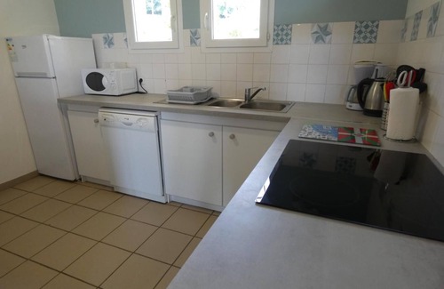 Come and enjoy the tranquility of the Vieux Port cottages with family, friends, or a small group. Recently built, the 8 cottages, all independent and close to each other, offer you every comfort for a successful vacation. Detached cottage, ground floor, living room with kitchenette, bathroom with walk-in shower, 3 bedrooms (2 double beds, 2 single beds), electric heating, washing machine, dishwasher, microwave, TV, Wi-Fi, unfenced grounds, garden furniture, barbecue, covered terrace, baby equipment upon request. Children's equipment upon request: crib and high chair. Linen rental available.