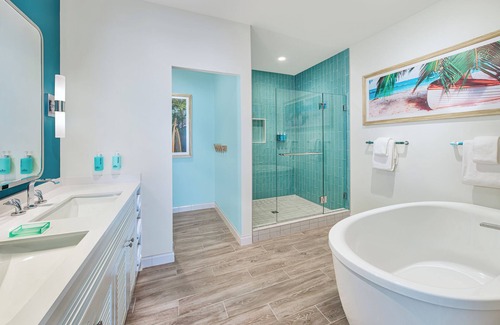 Margaritaville Hotel Kansas City offers 228 accommodations with safes and complimentary bottled water. Beds feature premium bedding. 65-inch LED televisions come with premium digital channels, pay movies, and Netflix. Bathrooms include bathtubs or showers with rainfall showerheads, bathrobes, and hair dryers.