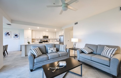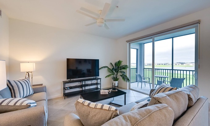 Pack your golf clubs, swimsuit, and flip-flops to enjoy all that Ave Maria has to offer from this 2-bedroom, 2-bathroom vacation rental. This 3rd-floor condo includes a well-stocked kitchen, 2 Smart TVs, in-unit laundry machines, a designated parking space, a covered balcony, and paid access to community amenities. Hit the greens at The National Golf and Country Club at Ave Maria, discover the creatures of Bird Rookery Swamp, or spend the day at Vanderbilt Beach.