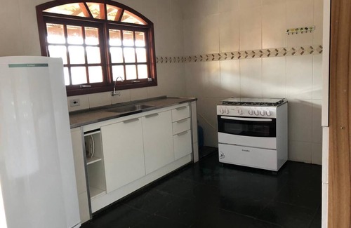 In the house we have 04 large rooms, living room with TV with SKY, kitchen equipped with 2 stove 4 burners, refrigerator, microwave, blender and kitchen utensils.