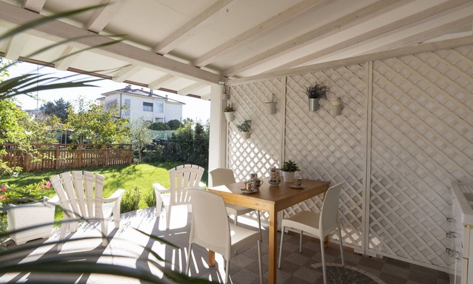 Small 3-family house "La Tartaruga Marina". In the district of Vallecrosia 2.5 km from the centre of Bordighera, 3 km from the centre of Ventimiglia, 14 km from the centre of San Remo, in the residential district, 100 m from the sea, 100 m from the beach. Private: garden 140 m2 (fenced) with lawn. 50 m long narrow motor access to the house. Public parking 150 m on the road. Supermarket 500 m, restaurant, bar 100 m, bus stop 800 m, railway station "Bordighera" 3 km, indoor swimming pool 900 m. Golf course (18 hole) 17 km. Please note: the owner lives in the same residence. Railway line 150 m from the property.