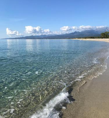 1.5 miles from Plage de la Marina d'Oru in Ghisonaccia, Marina corsa offers accommodations with access to an open-air bath. This beachfront property offers access to a balcony, free private parking, and free Wifi. Offering a terrace and sea views, the spacious apartment includes 3 bedrooms, a living room, flat-screen TV, an equipped kitchen, and 1 bathroom with a walk-in shower and a bath. Towels and bed linen are featured in the apartment. The property has an outdoor dining area. Fishing, canoeing, and hiking are possible within the area, and the apartment offers a private beach area. Bastia - Poretta Airport is 45 miles away.