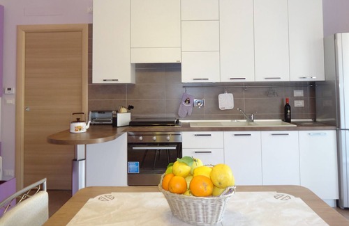 The Casa Vacanze Sole & Mare, reserved for non-smokers, is a comfortable air-conditioned apartment of 60 square meters with two equipped balconies, equipped with independent heating, which can accommodate 4 people + 2 extra beds with extra charge (pets not allowed). It is in a central area, bus to Messina under the house, a step away from a sandy beach (free with public showers that equipped with paid services), but away from the chaos of the seafront in the summer evenings and the noise of road traffic. On the first floor, with carport, it consists of a large living room / kitchen with a balcony and two single beds, one of which can be pulled out, and a double sofa bed, a double bedroom with balcony, a bathroom with bidet, large shower and washing machine. É except linen (bath / bed / table / beach towels) which you can rent. Supplement over 4 people € 15 / night.