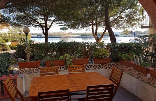 - Entrance, toilet, kitchen, dining room, sofa bed 2 persons Comfortable, outdoor terrace 18 m² overlooking the lagoon Sheltered from the wind (photos)