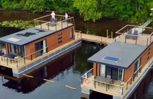 STUDIO HÉBERGEMENTS FLOTTANTS offers you a unique experience of high-end urban accommodation in floating houses on the Port of Quebec Marina site.