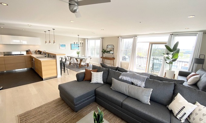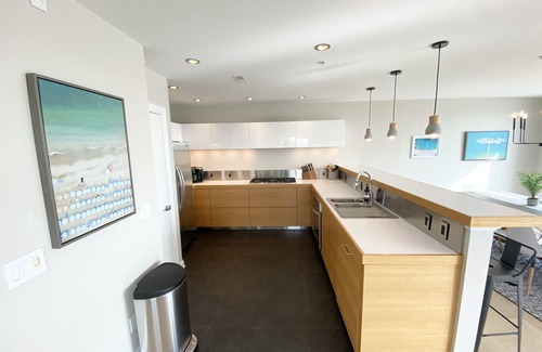 The space has a bright and airy open design decked out with top of the line custom cabinets, new stylish lighting, furniture and every essential you would need to make your vacation spot feel like a home away from home.
