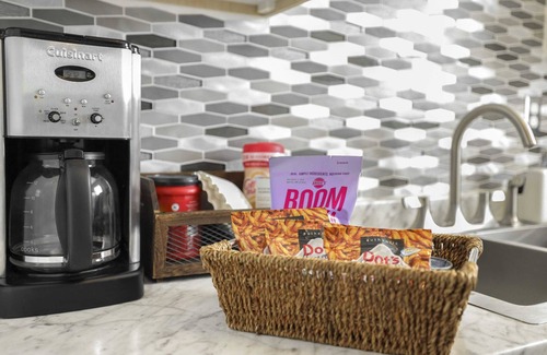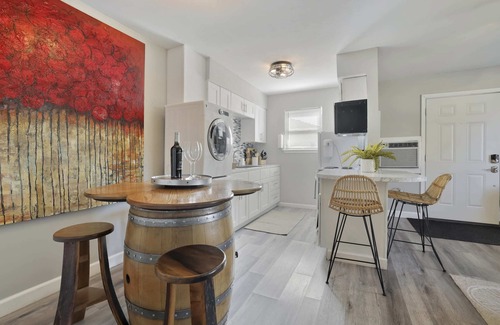 The fully equipped unit offers a delightful range of amenities, making it easy to unwind before or after your wedding festivities. Inside, you'll find a cozy queen bed and a convenient sofa bed, comfortably accommodating guests. Enjoy self-check-in for stress-free arrivals, alongside a fully stocked kitchen featuring modern appliances like a fridge, oven, and dishwasher—perfect for preparing celebratory meals. Additional perks include high-speed Wi-Fi, streaming-ready TVs, luxurious bed linens, plush towels, and essential toiletries, ensuring that you have everything you need for a memorable stay.