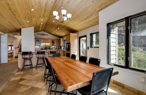 With sweeping mountain views and direct access to the water’s edge, Marla Bay Lakefront Escape offers everything you want in a Tahoe retreat. This grand lake house offers private beach access, a media area with a billiards table, ping pong table, and wet bar, as well as several balconies and decks to take in the vista. From Marla Bay Lakefront Escape you can easily entertain and comfortably sleep up to ten guests.