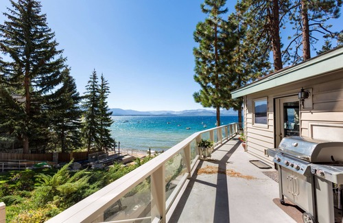 Marla Bay is a quaint, active community that celebrates all the year-round recreation that Lake Tahoe has to offer. From this stunning shorefront home, you can soak in the private hot tub, walk out and dip your toes in the water, or venture to larger beaches in the area such as Round Hill Pines and Zephyr Cove. Heavenly Village is just a ten-minute drive away. Swim, boat, and hike in the summer or ski, snowmobile, and snowshoe during the winter. Experience serene lake life at Marla Bay.