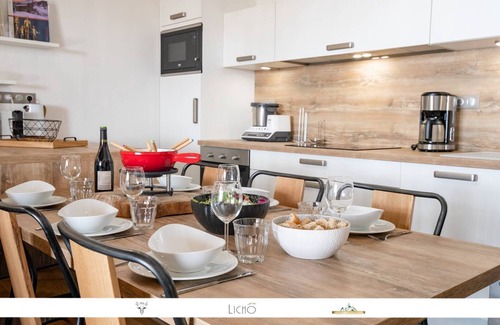 The kitchen is equipped with an induction hob, hood, oven, microwave, refrigerator, dishwasher, and small appliances: food processor, kettle, toaster, coffee maker, Nespresso coffee machine, electric citrus press, washing machine. raclette, fondue set ... dishes and kitchen accessories for more than 10 people
