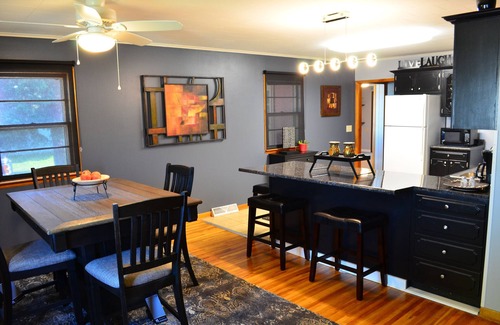 Our beautifully furnished home located in Sergeant Bluff, Iowa is located in a safe, quiet neighborhood featuring two bedrooms upstairs with king and queen beds, two bathrooms, laundry, fully furnished kitchen, living rooms with flat screen television, office, and three season porch. In the furnished basement we have two rooms featuring three queen beds, these are considered Day Rooms as there are no egress windows, sectional and flat screen television in the family area. Amenities include free wi-fi, washer, dryer, dishwasher, fenced yard, outdoor gas grill, attached single car garage with door opener, central air-conditioning and water softener.