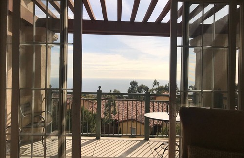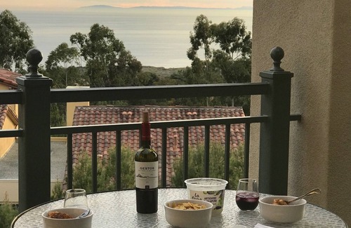 🏠A resort suite set on top of a hill overlooking the Pacific Ocean is a must rent while doing some surfing, golfing, shopping or dining. It's a warm, Mediterranean-style luxury condo with a fully equipped kitchen and a balcony with dazzling views. This short term, last minute vacation timeshare rental is affordable and better than a home Airbnb or a hotel stay. Travel along the beautiful coast to this timeshare next to Balboa Island, Fashion Island, Newport Pier, Diamond, Hyatt, Duke, Wyndham and Hilton resorts. 🏠