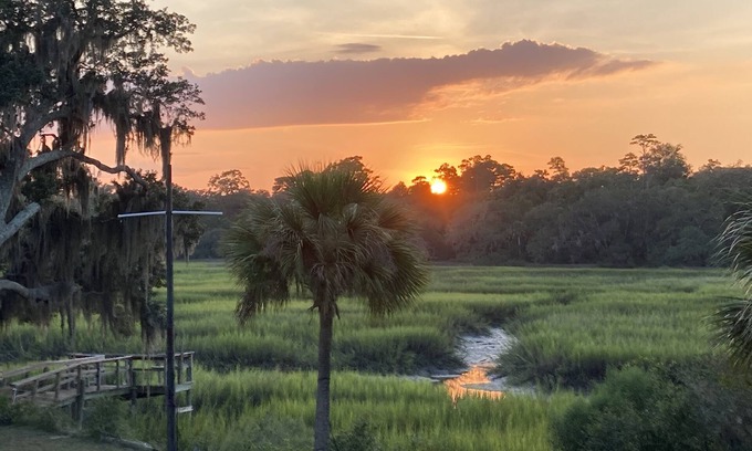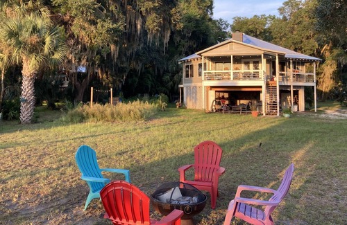 Two bedroom two bath (ensuite) marsh front home. Perfect for a relaxing respite. The quiet location and beautiful views are spell bounding. Sunsets on the creek and marsh take your breath away. Great for birding, kayaking and nature watching. You will love seeing dolphins in the creek at high tide. Near Sapelo Island, Harris Neck Wildlife Preserve and all the history and beauty of Darien and McIntosh County, GA. A birder's delight and a fisherman's paradise.