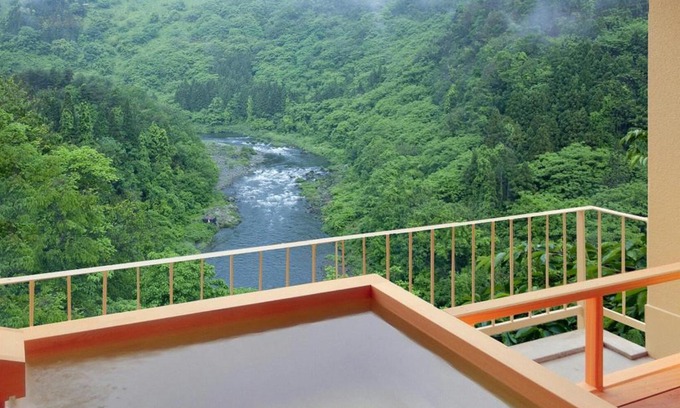 Located in Ashinomaki Onsen, 渓谷美の宿川音 provides air-conditioned rooms with private open-air hot spring bath. The property is located 9.9 mi from central Aizuwakamatsu and Aizuwakamatsu Castle is 8.7 mi from 渓谷美の宿川音. Ouchijuku, featuring traditional buildings is 8.7 mi from the property. The ryokan features a public hot spring bath, open-air hot spring bath and sauna. Free shuttle service to Ashinomaki Station is available. Luggage storage is available for guest's convenience. The rooms in the ryokan are fitted with a flat-screen TV. 渓谷美の宿川音 offers certain units that feature a balcony, and every room comes with an electric kettle. All units will provide guests with a fridge. Certain rooms feature Simmons mattresses. A traditional kaiseki (multi-course) dinner is served at the dining area. A buffet breakfast or Japanese-style breakfast is served each morning at the property.