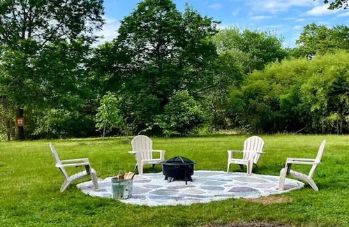 - European inspired 2-bedroom cabin with a brooke in back patio, in Monroe, NY.