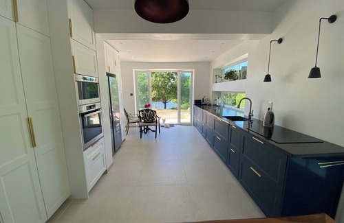 Fully fitted kitchen with under floor heating, living room with fireplace, 4 bedrooms 1 full bed, 2 queen beds, 2 single beds, and 1 sofa bed, making it perfect for families or groups of friends. With 2 bathrooms equipped with hair dryers, you'll have all the comforts of home.2 separate toilets.Enjoy amenities like separate laundry a washing machine, ironing facilities WiFi, heating, t's easy to see why you'll be able to unwind at our place.