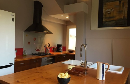 In the living room there is an indoor dining area, a flat screen TV with Free Box. Wifi Internet access is also available throughout the house and garden. The living room / kitchen is air conditioned.