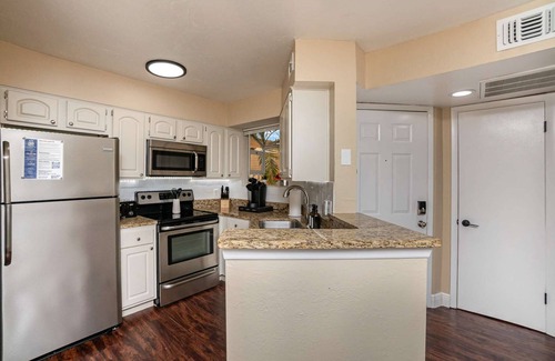 Guest may gain access to the condo anytime after check-in with deadbolt code. The condo is setup completely for guest use and everything is accessible to guests with the exception of the locked hallway utility closet. You will have access to the community pool, jacuzzi and gym from sunup to sundown with the FOB hanging by the entry door. We provide self check-in so we will not meet in person unless the need arises. The listing is setup exclusively for guest use. We are just a message/call away if you need assistance or suggestions of things to do in the area!