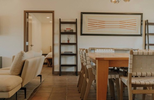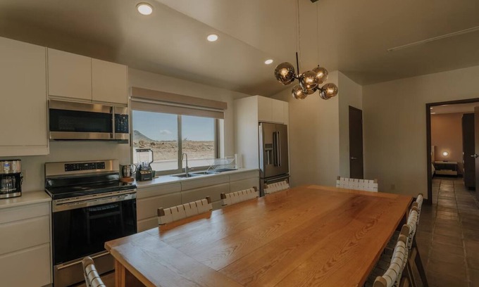 Discover the pinnacle of refined comfort in our spacious 4BR/4BA retreat, perfectly set apart from The Field. Experience the air, light, and colors of the Chihuahuan Desert sky with stunning mountain views from every corner. Enjoy natural comfort inside our modern-styled living room, full kitchen, and expansive outdoor area. The unique design perfectly captures the spirit of the American West. Immerse yourself in breathtaking desert light and landscape in this one-of-a-kind haven.
