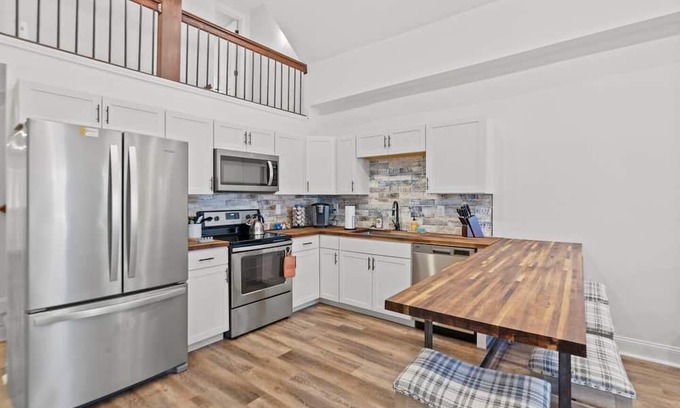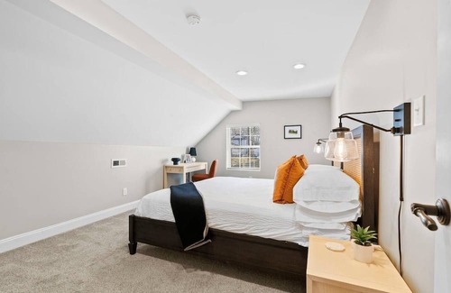 Indulge in comfort and style in this inviting home with a thoughtfully designed space by the wonderful Schnabel Intertiors, located here in Lexington. The first floor boasts a luxurious master bedroom featuring a king bed and a full bathroom for ultimate convenience. Another cozy bedroom on the same floor offers a queen bed. Ascend to the second-floor loft, where a spacious area awaits, furnished with a king bed and a convenient desk.