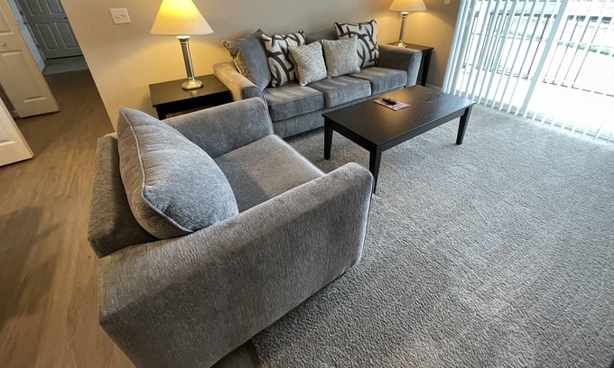 New community close to shopping and dining! This is a great hotel alternative available for a limited time only. 2 bedrooms with 2 queen beds and TV in each room, Wifi, Roku and kitchen comes with everything you need! Just add food.