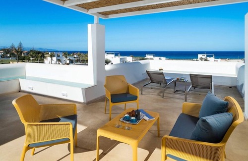 Outside, the main focus of the property is its private swimming pool (5x3m; 1.2m deep, open all year round). A covered large terrace with comfortable seating and table with chairs, perfect for al-fresco dining while enjoying the seaside breeze. The rooftop is also a main lounge area, with Jacuzzi (heated on request to 26 degrees Celsius; 2x2m; 0.7m deep), covered gazebo with table and chairs, sun lounges and of course, stunning sea views!