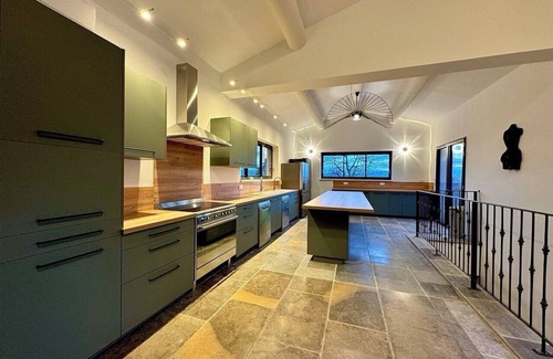 -A fully-equipped kitchen with dishwasher and American fridge with integrated ice dispenser.