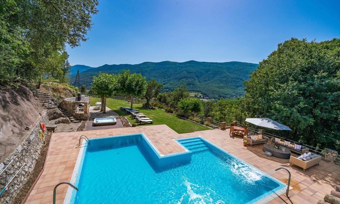 Set on a mountainside, this beautifully restored house, over 300 years old, offers stunning views from almost every point of the property.