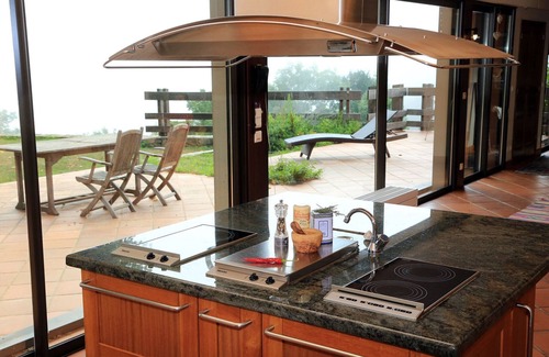 The balcony leading from the combined kitchen/lounge can also be accessed via a stairway from the spacious ground-level terrace in front of the Bungalow.