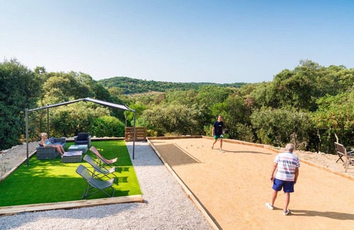 🌳 Private extensive gardens, set in a forest and not overlooked with a beautiful boules pit and chill-out area.