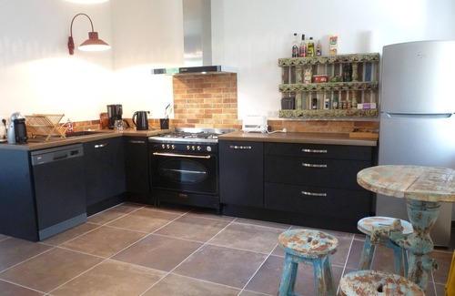 5 minutes from the beaches of La Baume, near the village of Ruoms, near the gorges of Ardeche. Mas completed renovating in 2018 300 M2 for 12 people. You will appreciate its large volumes and its neat decoration of Indian influence.