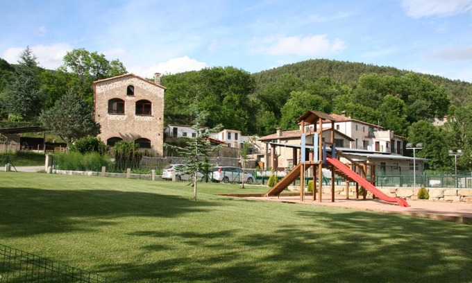 Set by the Pyrenees, on the foothills of Serra de Montgrony, Mas La Riera is located in Campdevánol. Offering an outdoor swimming pool and fitness center, the country house has free Wi-Fi. With wood and stone finishes, the house freatures colorful rooms and a living-dining room with a flat-screen TV and DVD. There is a kitchenette including a dishwasher and oven. The bathroom comes with free toiletries and a hairdryer. Mas La Riera has a garden with a furnished terrace and BBQ facilities. There is a tennis court and bicycles available for guests, as well as a children’s playground. The surrounding nature is ideal for outdoor activities such as hiking. Ripoll is 10 minutes’ drive away, offering a variety of traditional Catalan restaurants. Vic is a 30-minute drive and Olot is 22 mi away.