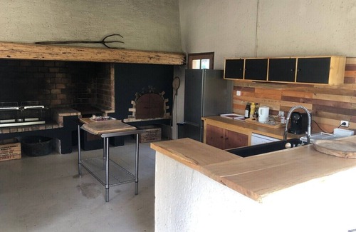 Summer kitchen overlooking a wooded park, a barbecue, fireplace, sofa, lounge chairs for your lunch, outdoor dining to rest away from the pool and the main body of the Mas, a real living room ...