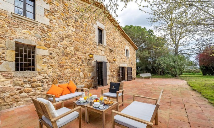 Welcome to an idyllic location! Masía Marco Lux is an old country house from the 16th century. XVII, located on the outskirts of the town of Llagostera, surrounded by flowery fields and just 15 minutes by car from the best coves and beaches of the Costa Brava. The farmhouse has been rehabilitated preserving its original structure, respecting and enhancing its personality as much as possible, combining history with comfort. With capacity for 14 people, living room with open fireplace, library, garden with swimming pool and barbecue, it is a magical place that invites rest and relaxation, family entertainment and custom-made celebrations, where charm coexists in perfect harmony. of the old with the comfort of the new.