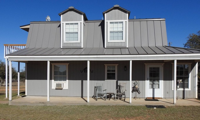 Welcome to your charming oasis in Mason, TX! This cozy 2-bedroom, 2-bathroom home perfectly blends comfort and style, making it an ideal retreat for families or anyone seeking a peaceful getaway. Step inside to discover a warm and inviting living space that flows seamlessly into a kitchen, complete with all the essentials for your culinary adventures. Each bedroom offers ample space and natural light, providing a tranquil atmosphere for restful nights. The bathrooms are thoughtfully designed for convenience and relaxation. Enjoy the beautiful Texas weather from your private screened in porch or upstairs balcony, perfect for morning coffee or evening gatherings. Conveniently located 13 miles from Mason square with local amenities and surrounded by the picturesque landscapes of Mason, this home is waiting for you to make it your own!