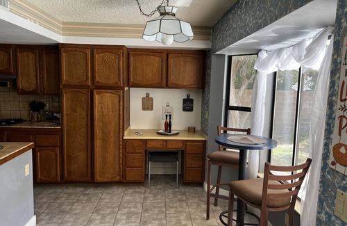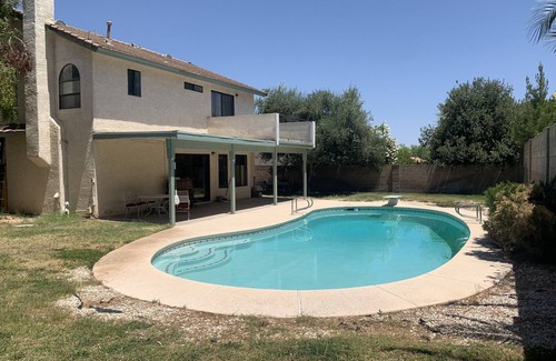 Master bed & bath amenities with an upper deck overlooking the pool. There is a coffee maker and smart HD television in the master bedroom for convenience to enjoy the relaxing morning either on your deck. Full kitchen access to cook any meal. If needed there is an office downstairs with a couch that pulls up into a full-size bed for an added bedroom, if necessary. The common areas in the house are available. The refreshing pool is available with a patio for relaxation to cook on the grill and swim before an evening of festivities on the strip.The home is welcoming with Vegas history and memorabilia and set up with plenty of space with a living room, dining room, bar, and piano. The garage, two bedrooms and one bathroom are off-limits with the home occupied by a tenant who will not be in your way or bother your good time. We welcome feedback to make the home more welcoming to the guests as we only rent out the partial space for Vegas travelers to enjoy a sports event or show at a cheaper rate than the strip, yet very close.