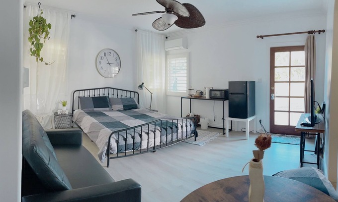 Enjoy a peaceful and relaxing stay in this spacious Master Bedroom in Central Orange County. For your convenience, you'll have a private gate and personal entrance for easy check-in. The room features a large bathroom, a bathtub, and a walk-in closet, providing the perfect retreat from your busy daily life.