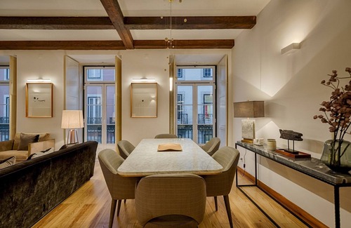 This spacious apartment, spanning 170m2, is designed to host up to 6 guests. While labeled as a first-floor dwelling, you'll find it's actually elevated to what many would consider the second level. Housed within a classic Lisbon building, without an elevator, its ambiance more than compensates for the brief ascent. Right around the corner from the iconic Praça Luis de Camões and within easy reach of Baixa, Rossio, and Avenida da Liberdade, the city's essence is right at your doorstep.