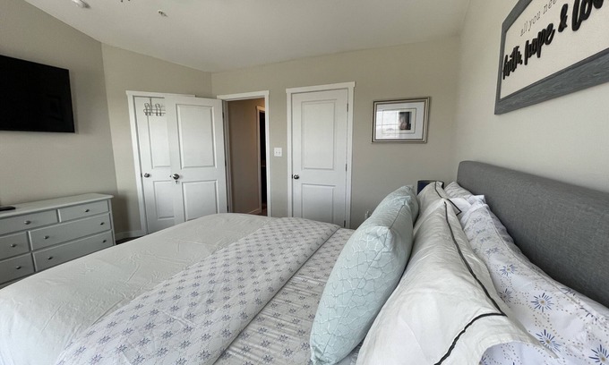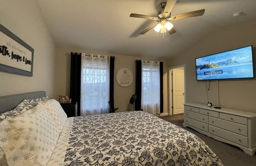 Master’s bedroom in a 3level townhome located in a safe and quiet Communities of Burwell in Martinsburg, WV. Grocery stores, restaurants, gas stations are few miles away. 6 miles drive to Berkeley Medical Center, 14miles to VA Medical Center, nearby Macy’s fulfillment Center, Hagerstown Premium Outlets,