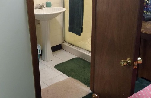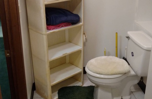 Facilities located on lower level. Host lives upstairs. Kitchen is upstairs.