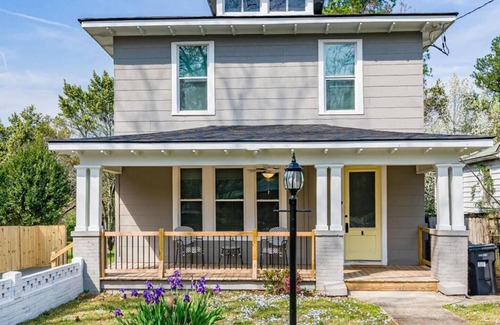 This home is a completely renovated Early 20th Century home with a Modern feel. Built in 1911, it is the perfect location to see all of Augusta! Kitchen is fully stocked, Smart TV's in all rooms, Spacious Living and Dining Area. Fully fenced HUGE backyard with gazebo, fire pit and plenty of seating. There is one bedroom on the main level as well as 3 additional bedrooms upstairs. Plenty of space for your entire crew!