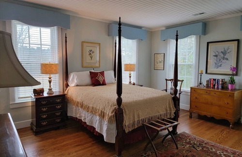 This is a 137 year old home located on a family farm. We have a Resturant located on Main Street “Christines Farm to Fork”. On property there is 120 acres and 3 ponds. The rooms are charming & relaxed
