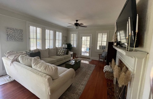 This early 1900s home has been completely renovated and offers over 3,000 sqft of space. House features 4 bedrooms and 3 full baths. If you are looking for space this home offers 3 different living spaces with TVs and two rooms have fireplaces.