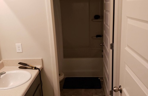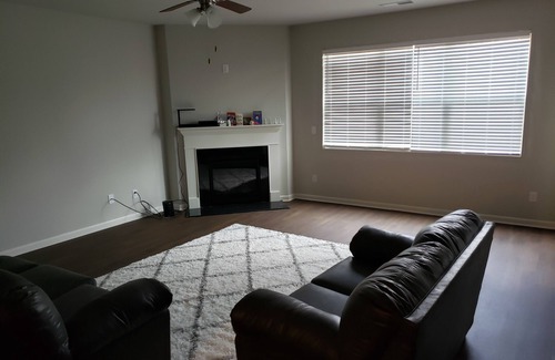 New house with a modern open floor plan. Two spacious bathrooms upstairs and downstairs for multiple guests. There isnt much decor or clutter which is great for entertaining or if you are bringing plenty luggage! My favorite room is the large, inviting living room with a comfortable loveseat and sofa. A quiet area in and outside the location. Your stay here will be within minutes of the golf course. You will not be disappointed!