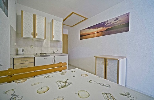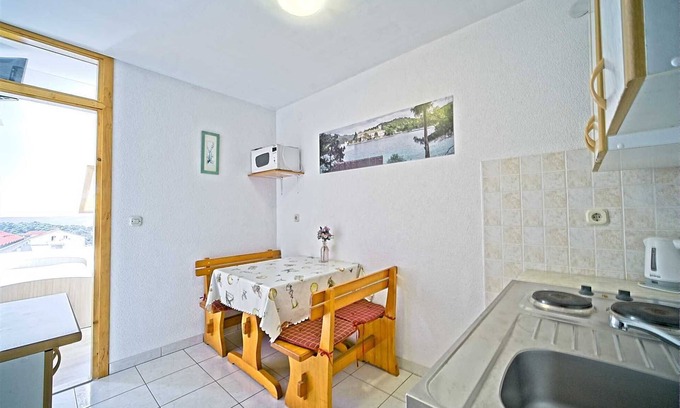 One bedroom apartment with double bed, possibility of an extra bed, kitchen, private bathroom and private terrace with sea view.The spaceOur family owned house is situated in a lovely and peaceful village Pomena on the island of Mljet which is the eighth largest and greenest Croatian island. It is characterized by a Mediterranean climate, dry summers and mild winters and is one of the sunniest Adriatic islands.House is situated just 50 m from the sea and 300m from lakes.Apartment offers cozy bedroom with double bed and exit on private, furnished balcony, fully equipped kitchenette and bathroom with shower. Kitchenette provides fridge, coffee maker, microwave, stove and kitchen utensils. Balcony offers great sea view and view on village. Apartment also features TV, A/C, free WiFi, SAT TV and free parking. Hairdryer is possible on request.Thanks for considering staying with us! We look forward to your visit!Guest accessGuest have private entrance and they're renting whole apartment.Free parking is at our guests disposal - reservation needed.Services with a surcharges:baby cotbreakfastpets