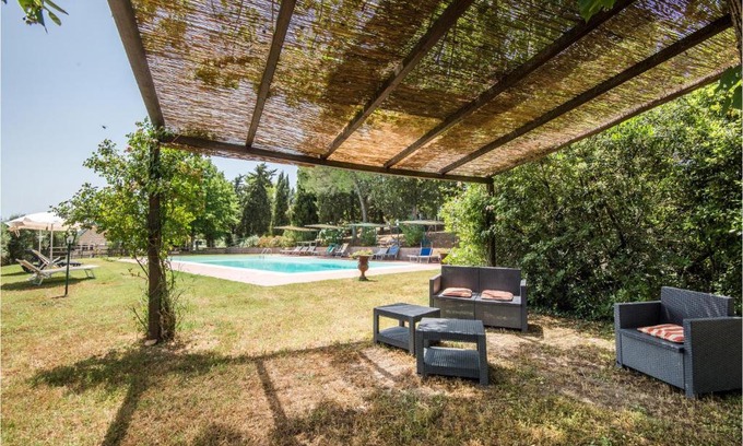 Materno 4 offers accommodations in Radicondoli, 26 miles from Palazzo Chigi-Saracini and 26 miles from National Museum of Etruscan Archaeology. Providing free private parking, the 3-star apartment is 28 miles from Piazza del Campo. Outdoor seating is also available at the apartment. This apartment includes 2 bedrooms, a living room and a TV, an equipped kitchen with a dining area, and 1 bathroom with a hot tub. The accommodation has a fireplace. Materno 4 also provides an outdoor swimming pool and a hot tub for guests to relax in. National Picture Gallery Siena is 27 miles from the accommodation, while Siena Train Station is 27 miles away. Florence Airport is 50 miles from the property.