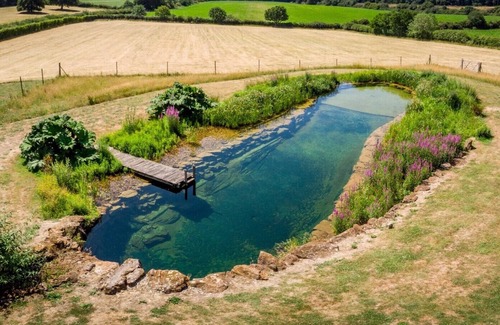 Mattie’s Loft – Is only available min 2 x night stay at weekends/1 x night stays during the week - It is an attached guest suite to the main house, with EV charging (£25 additional cost per charge) and its own private entrance with key safe, boasting a private secure courtyard garden suitable for pets (£40 additional cost per pet per stay) complete with Log fired hot tub (£60 additional cost per stay per week) NB - Please note it takes 2-3hrs to fully heat the hot tub, provided you follow my detailed instructions, and the fire is properly/regularly maintained! All materials required are provided, the 2nd day only requires 1hr of heating. It's well worth the effort and wait! The suite features a double ensuite bedroom with Smart TV a selection of board games and kitchenette with Nespresso machine, fridge, microwave/combi oven, hob and dishwasher. As well as the private garden there’s shared use of the filtered, spring fed, 30m x 8m natural swimming lake. There's also an interconnecting door with Jossie’s Snug for larger groups.