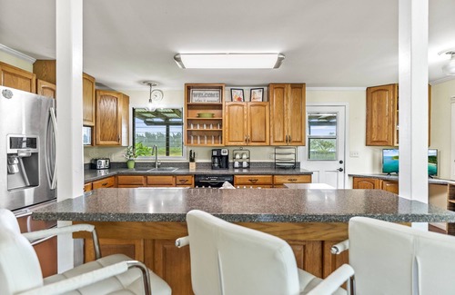 Mau Loa Hale: Perfect Location 5 Acres Walk to Bch! Open concept! Breeze & Views is located in Punaluu. Mau Loa Hale: Perfect Location 5 Acres Walk to Bch! Open concept! Breeze & Views provides accommodation, featuring TV, View, Ocean View, among other amenities. This House features TV, View, Ocean View, to make your stay a comfortable one.