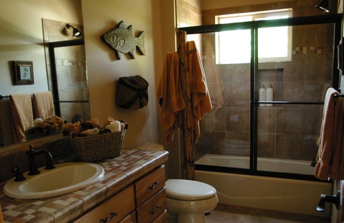 Our smoke-free custom-built lodge style home is settled amongst the majestic pines over looking the peaceful Maud Lake in North Bend. Our home is completely furnished with rustic log furniture, soft leather couches and a large myrtle wood dining table and extremely comfortable beds. The placement of the home lets you enjoy spectacular views of the lake from almost every angle. Relax outside in an Adirondack chair out on the spacious deck overlooking the calm lake. Take time to start a fire in the sunken fire pit on the patio, made of pavers, while enjoying the beauty of the Oregon Coast. Barbecues just taste better in this tranquil alpine setting.