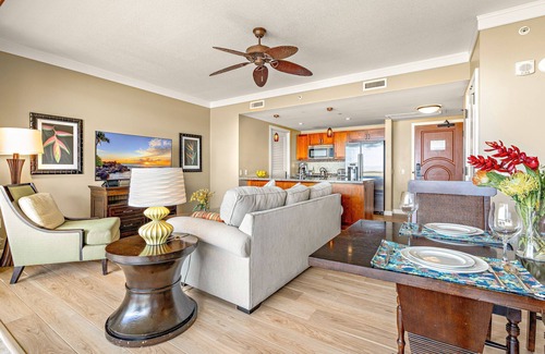This exclusive corner suite boasts an expansive wrap-around balcony that provides unmatched views of the turquoise Pacific Ocean. Each suite is fully appointed with a modern kitchen, allowing you to whip up culinary masterpieces or toast to new beginnings with refreshing cocktails prepared using the commercial-grade Vitamix blender. Delight in resort amenities such as a three-acre aquatic playground with pools, waterfalls, and hot tubs, as well as the acclaimed Duke’s Beach House Restaurant serving fresh Hawaiian-inspired cuisine. With complimentary high-speed Wi-Fi, washer/dryer facilities, and Ohana Plus amenities, every detail has been designed for your convenience and enjoyment.